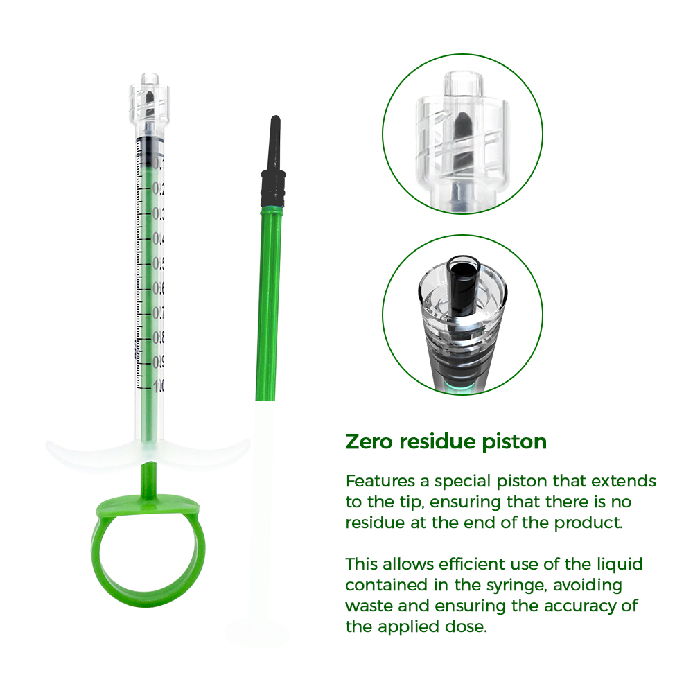 It is made with a crystal clear PC polycarbonate cylinder, which offers excellent visibility and an engraved scale to facilitate accurate reading of administered doses.