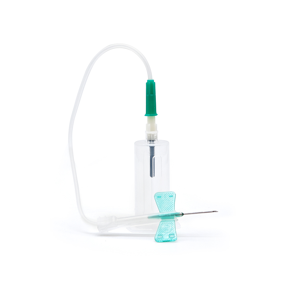 Structure and Composition Double-wing type blood-collecting needle is consisted of protective cap, rubber sleeve, needle hub, needle tube, tubing, female conical interface, needle handle, double-wing plate.