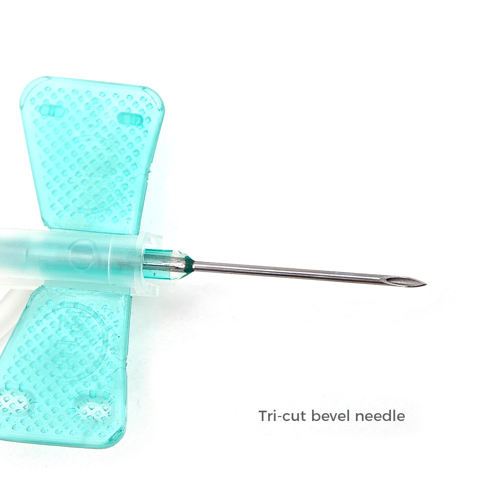 • The butterfly wing design is easy to operate, and the color of the wings distinguishes the needle gauge.