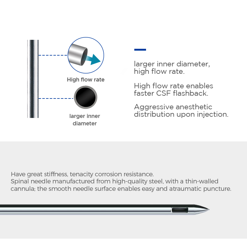 Spinal needles are applied to puncture, drug injection, and cerebrospinal fluid collection through lumbar vertebra. |