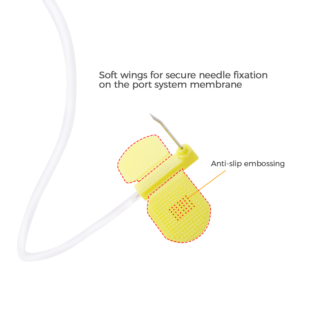 • The Huber Needle is applicable to embedded in the patients with subcutaneous, used for infusion.