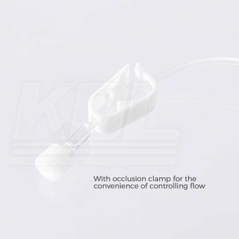 Structure and composition Huber needle is consisted of lock cover, female conical fitting, tubing, flow clip, tubing insert, Y-injection site/needle free connector, tubing, double-wing plate, needle handle, adhesive, needle tube, protective cap.