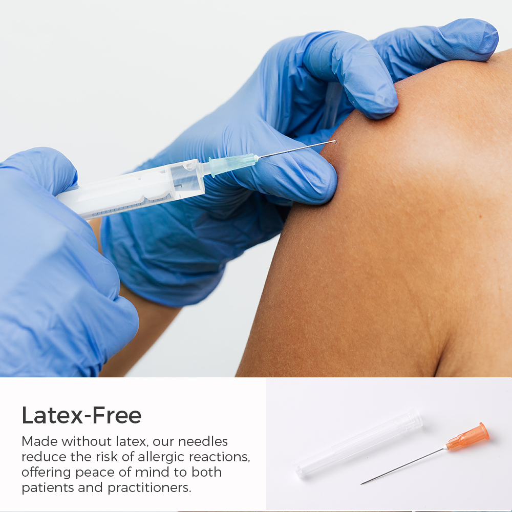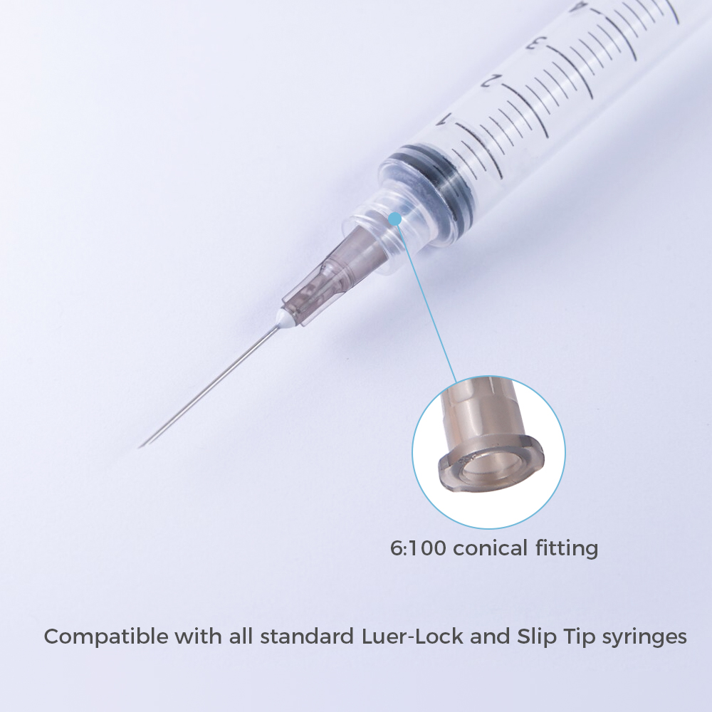 The single-use sterile injection needle consists of a needle holder, a syringe, and a protective sleeve. The material used meets the requirements for medical use and is sterilized by ethylene oxide, making the product sterile and pyrogen-free.