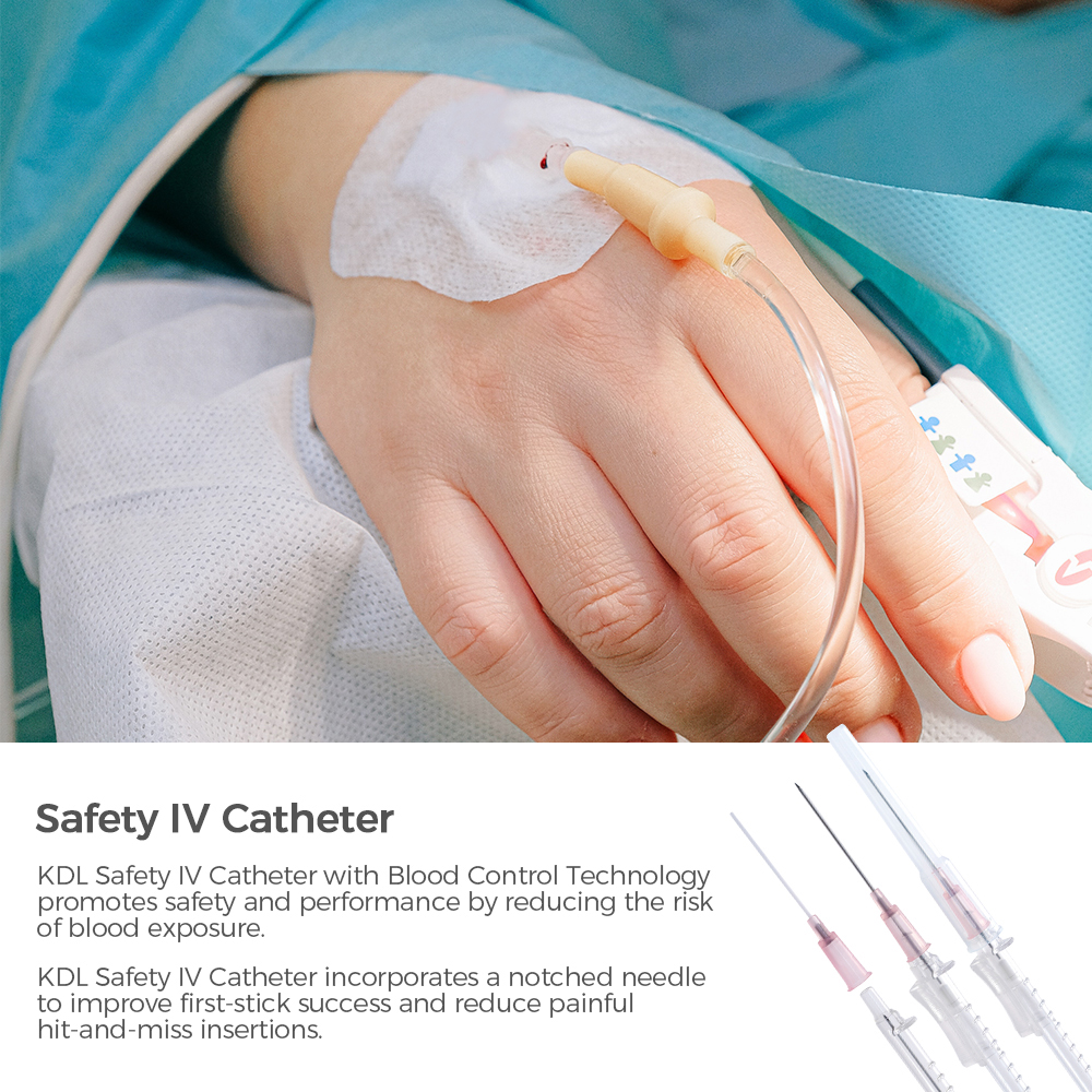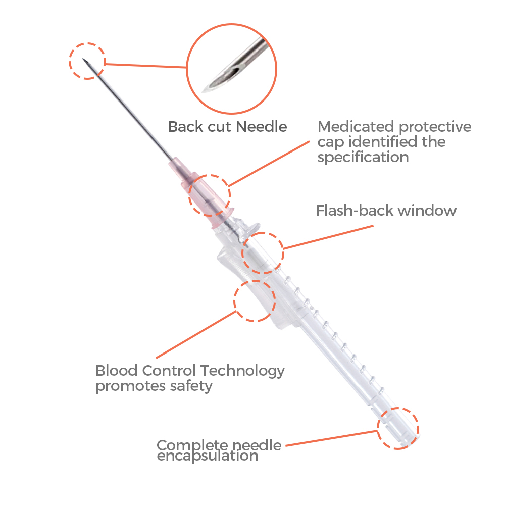 - Flashback” window” for quick visualization of bloodPU Biomaterial Catheter for longer indwelling period.