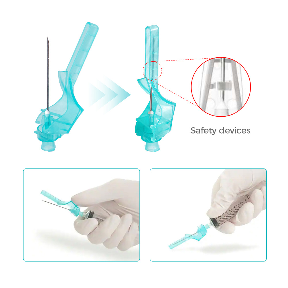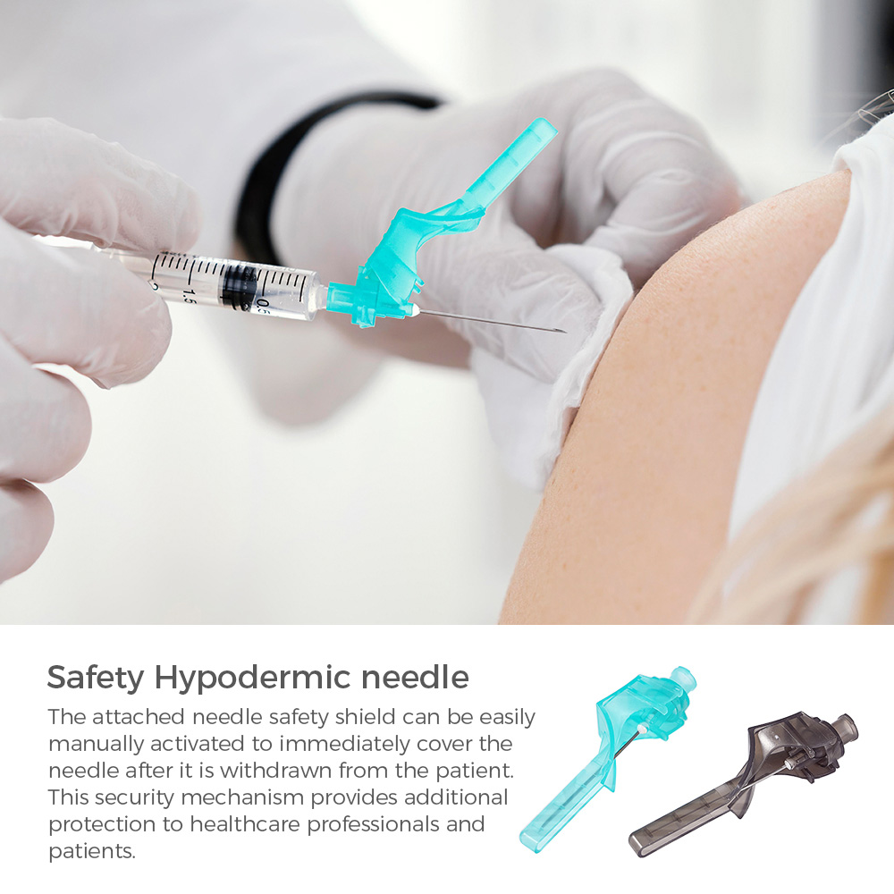 The safety needles are intended to be used with a Luer slip or Luer lock syringe for aspiration and injection of fluids for medical purpose.After withdrawal of the needle from the body, the attached needle safety shield can be manually activated to cover the needle immediately after use to minimize risk of accidental needle-stick.