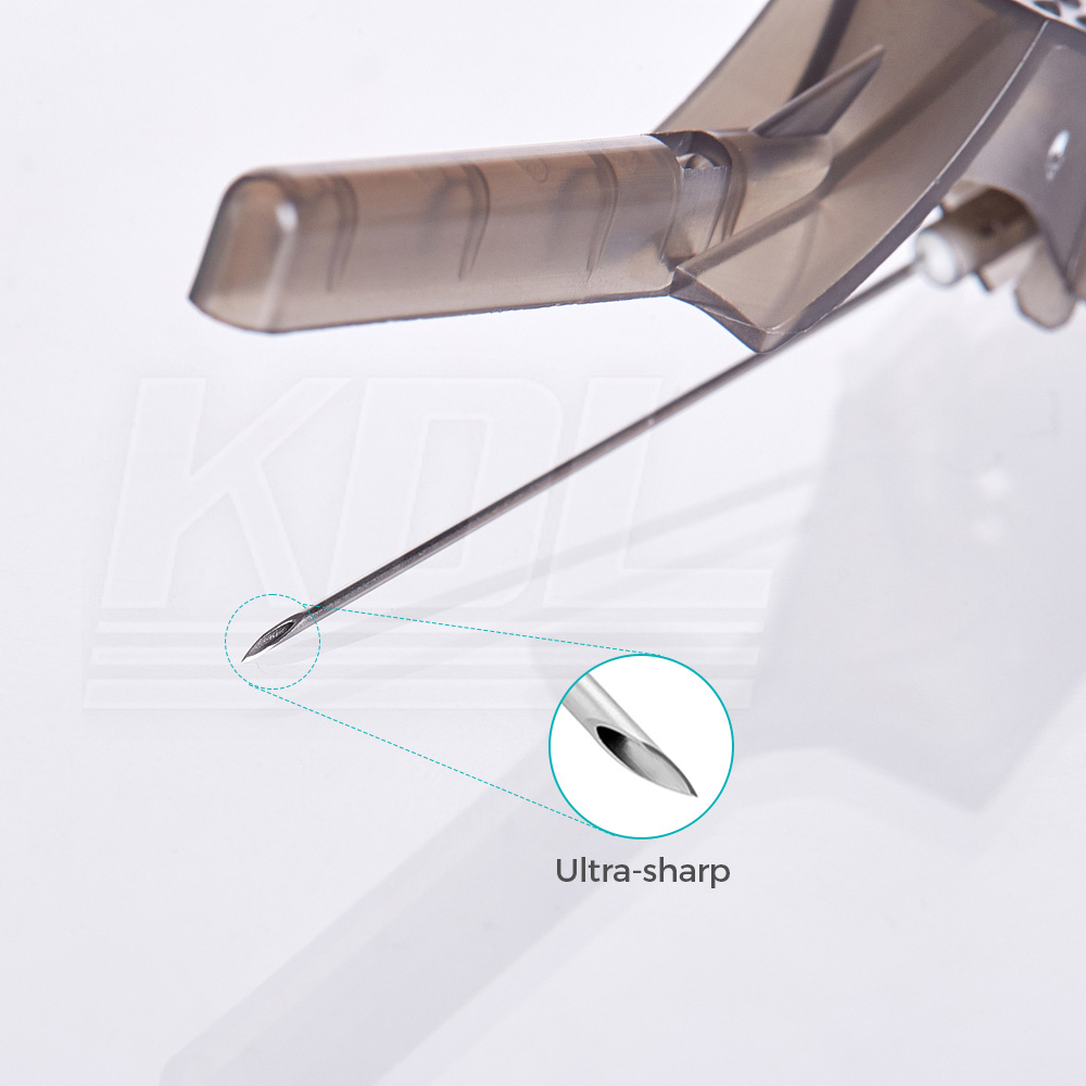 Fine design of needle tip, good sharpness of three blade structure, fast needle puncture, less pain and less tissue damage.