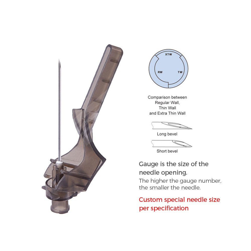 The needle tube adopts the international popular thin wall tube design, with large inner diameter and high flow rate.